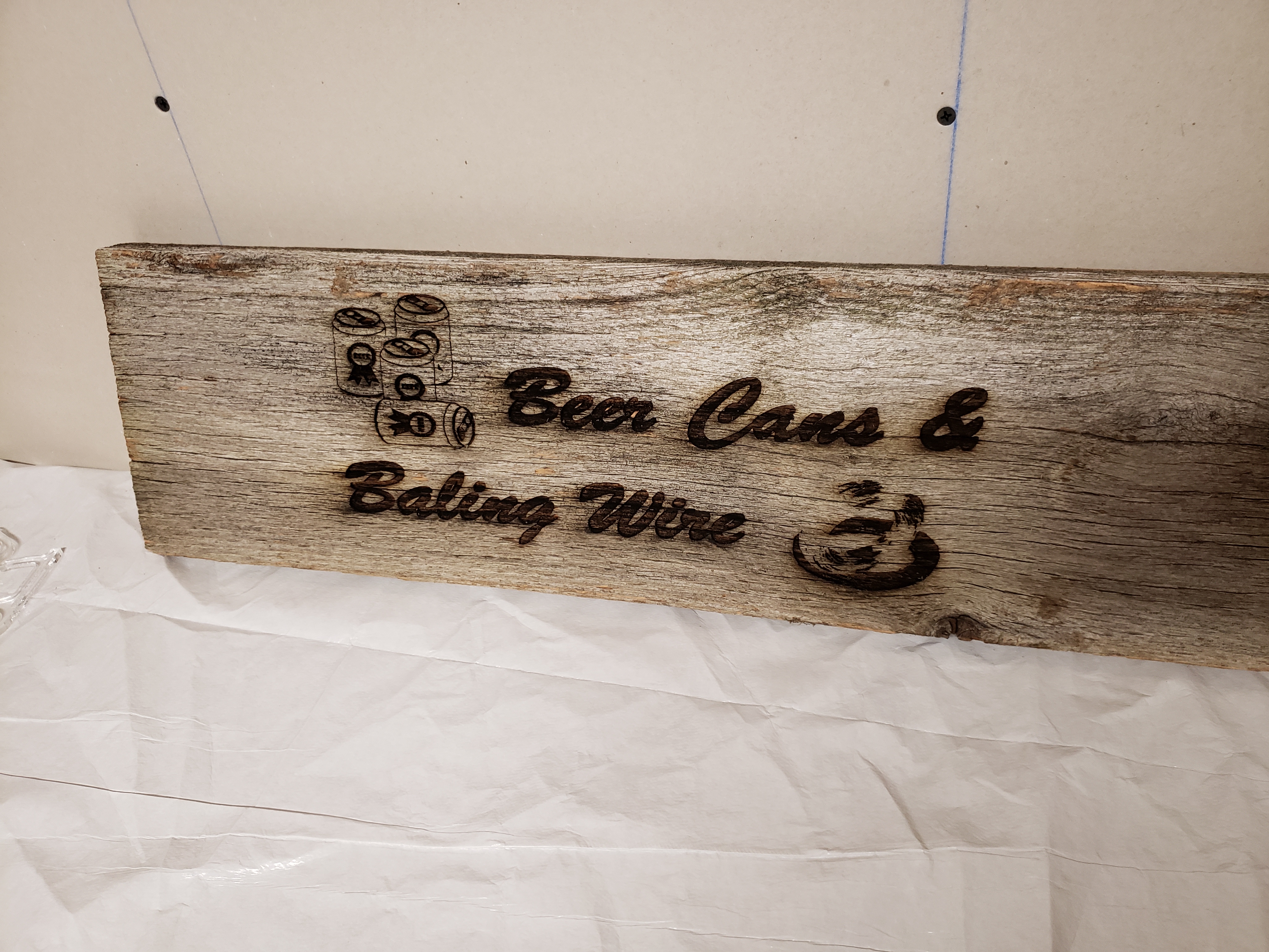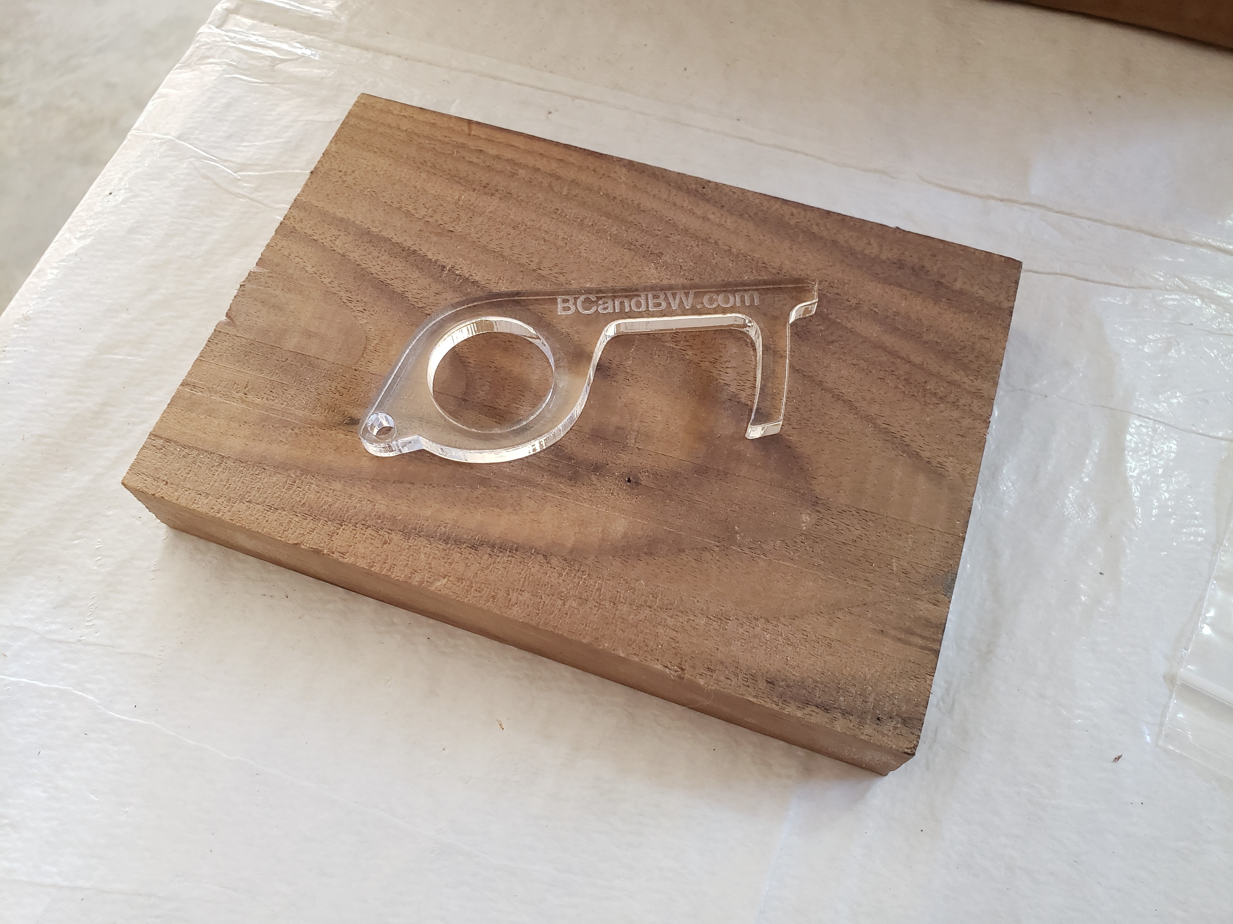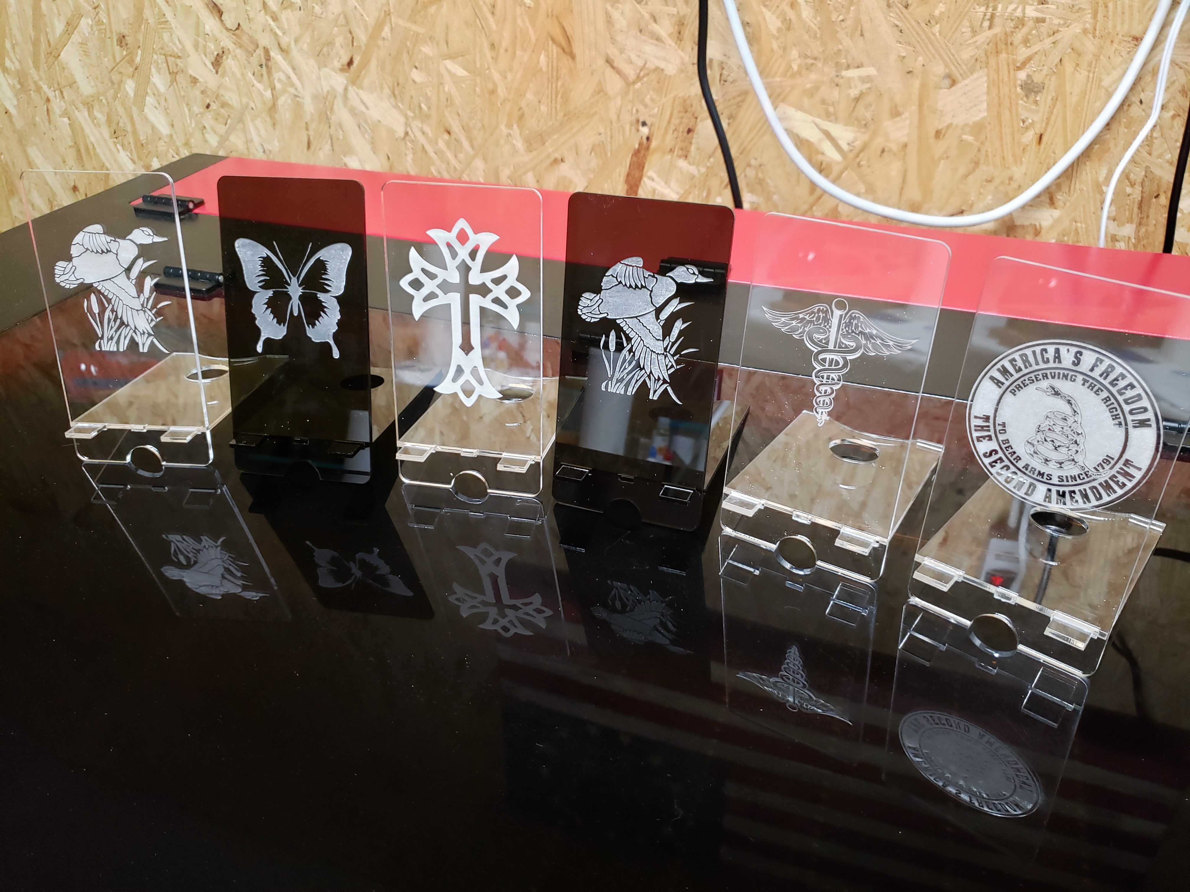 Engraving cost is based on time/power required ($.85/hr per watt). For example, the shown sample took 26 minutes at 60 watts, so the engraving itself cost $22.10,