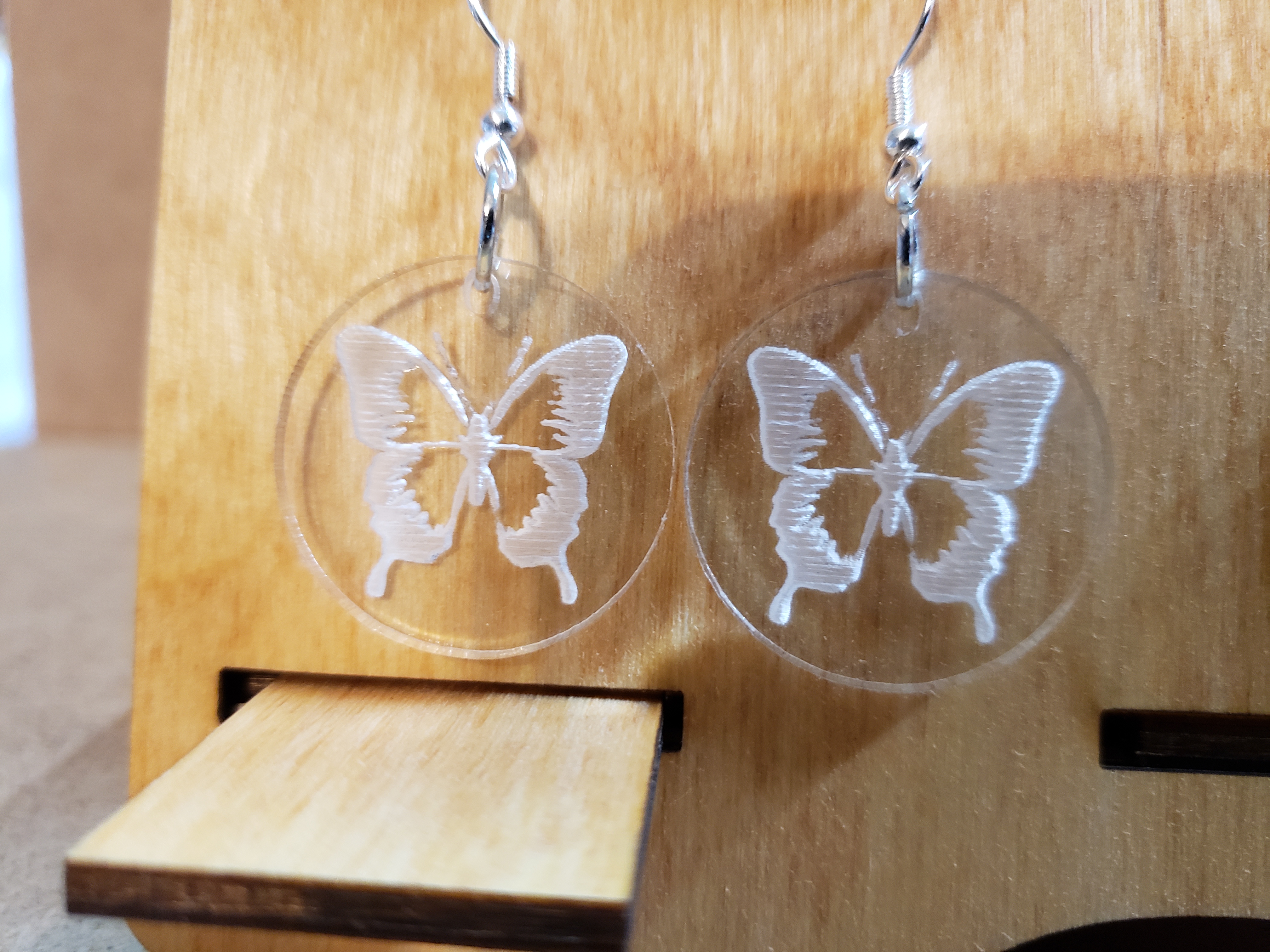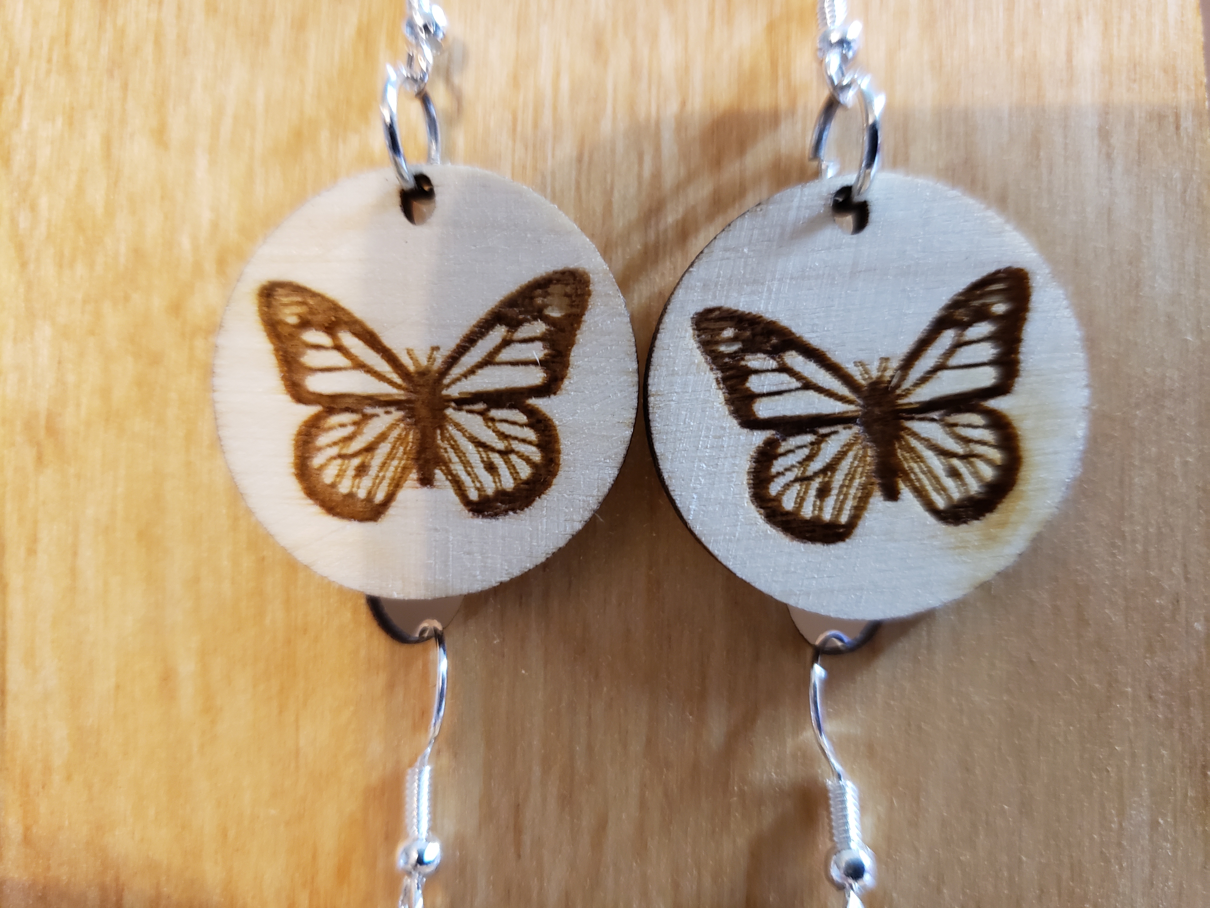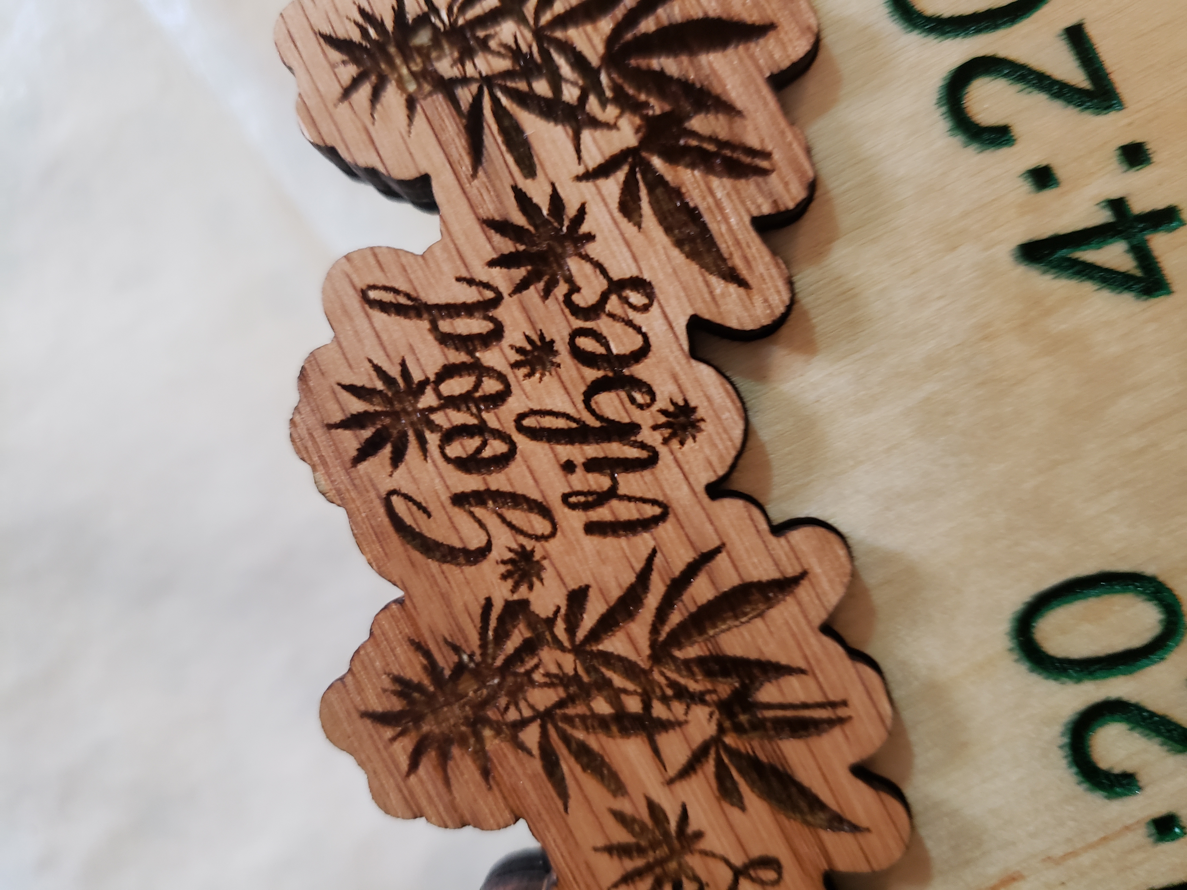 Engraving cost is based on time/power required ($.85/hr per watt). For example, the shown sample took 26 minutes at 60 watts, so the engraving itself cost $22.10,